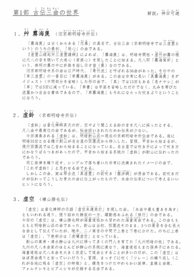 虚実の間を行き来する尺八の歴史。真実を求めれば求めるほどその迷宮に迷い込んでしまう。邪念を振り払おうと必死に本曲に向かうとき、その清冽な響きが答えを導いてくれる。時代の波をくぐり抜け伝承されてきた尺八本曲。清濁を併せ呑むそのエネルギーの源泉は何なのか。